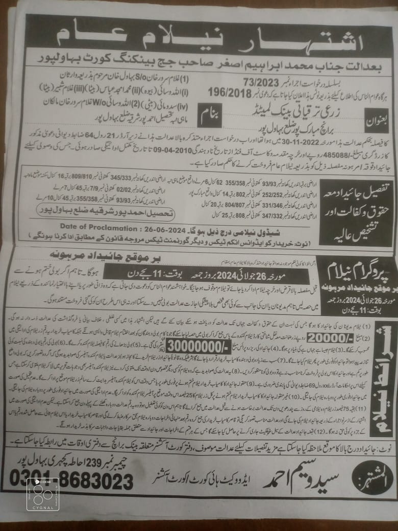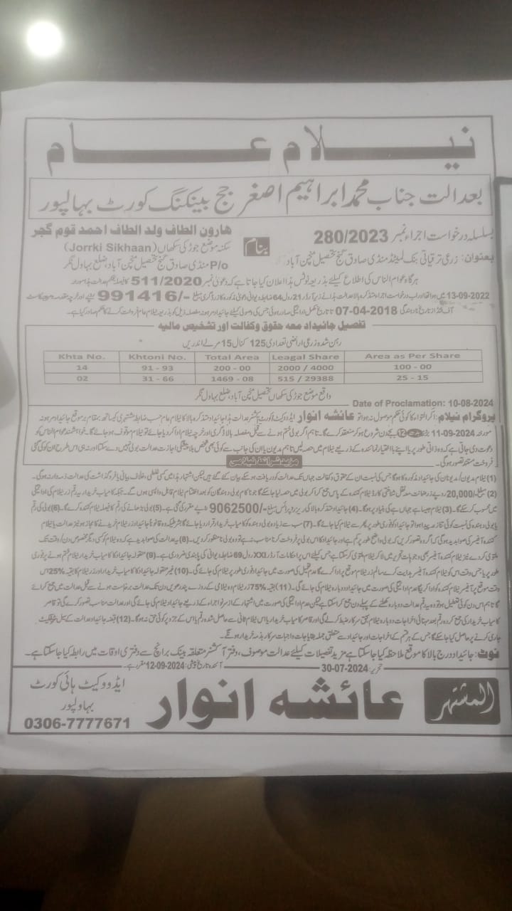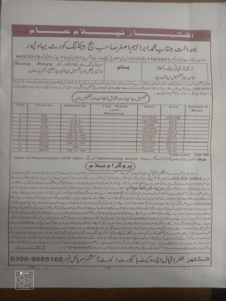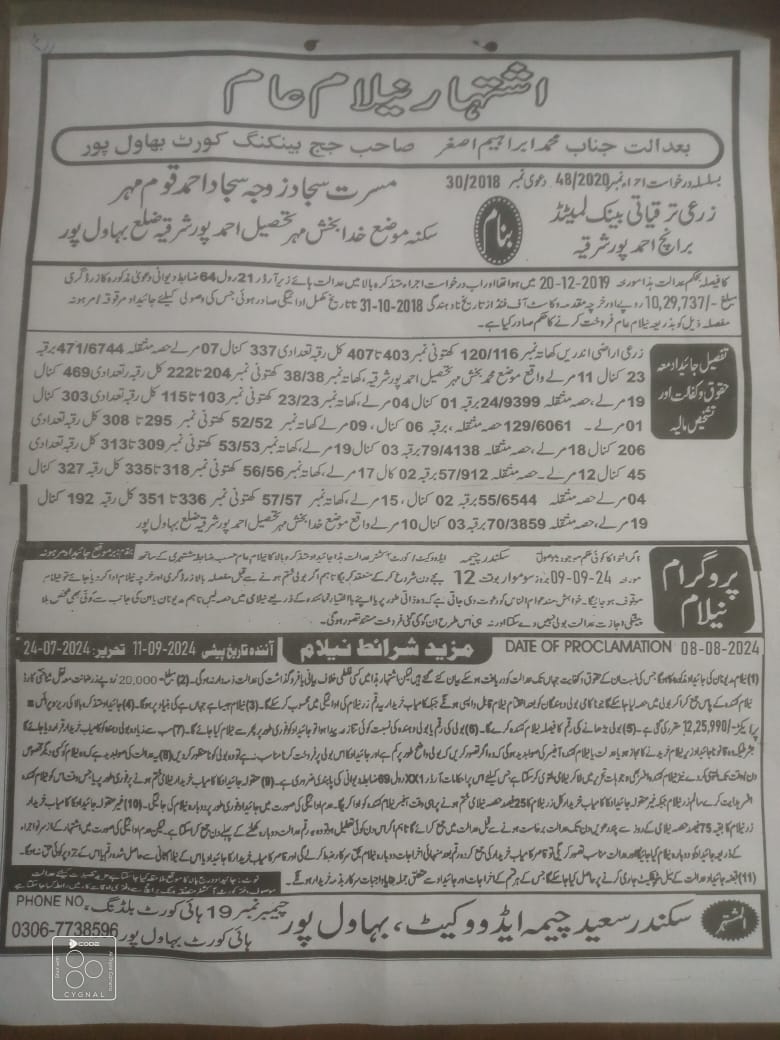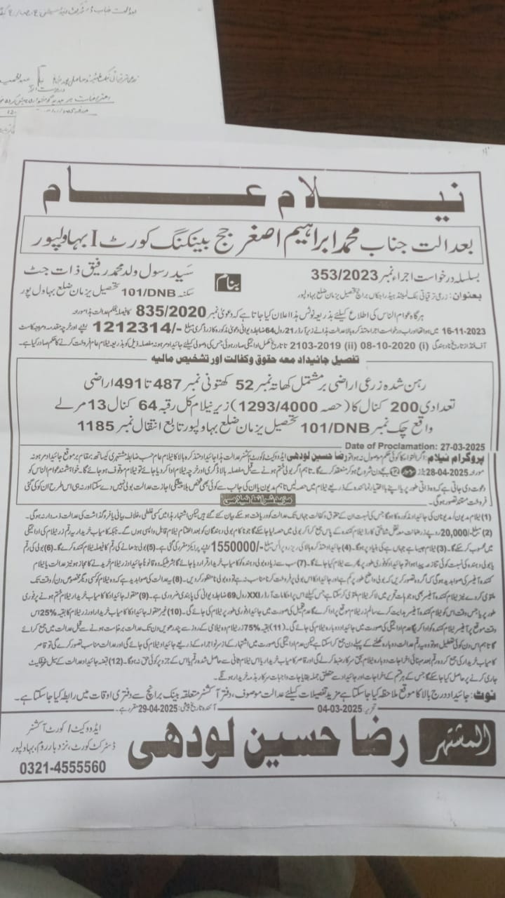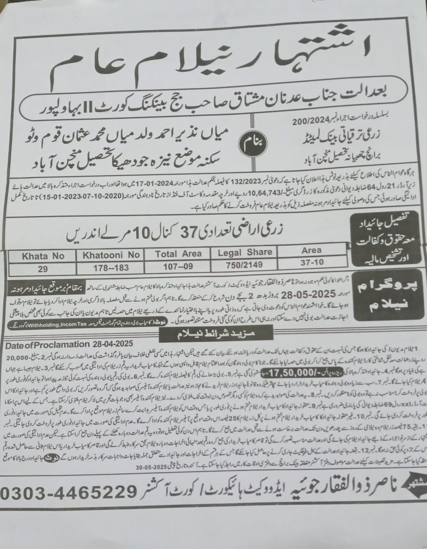 4. خانپورماہر برانچ کی عوامی نیلامی پینافیلکس
