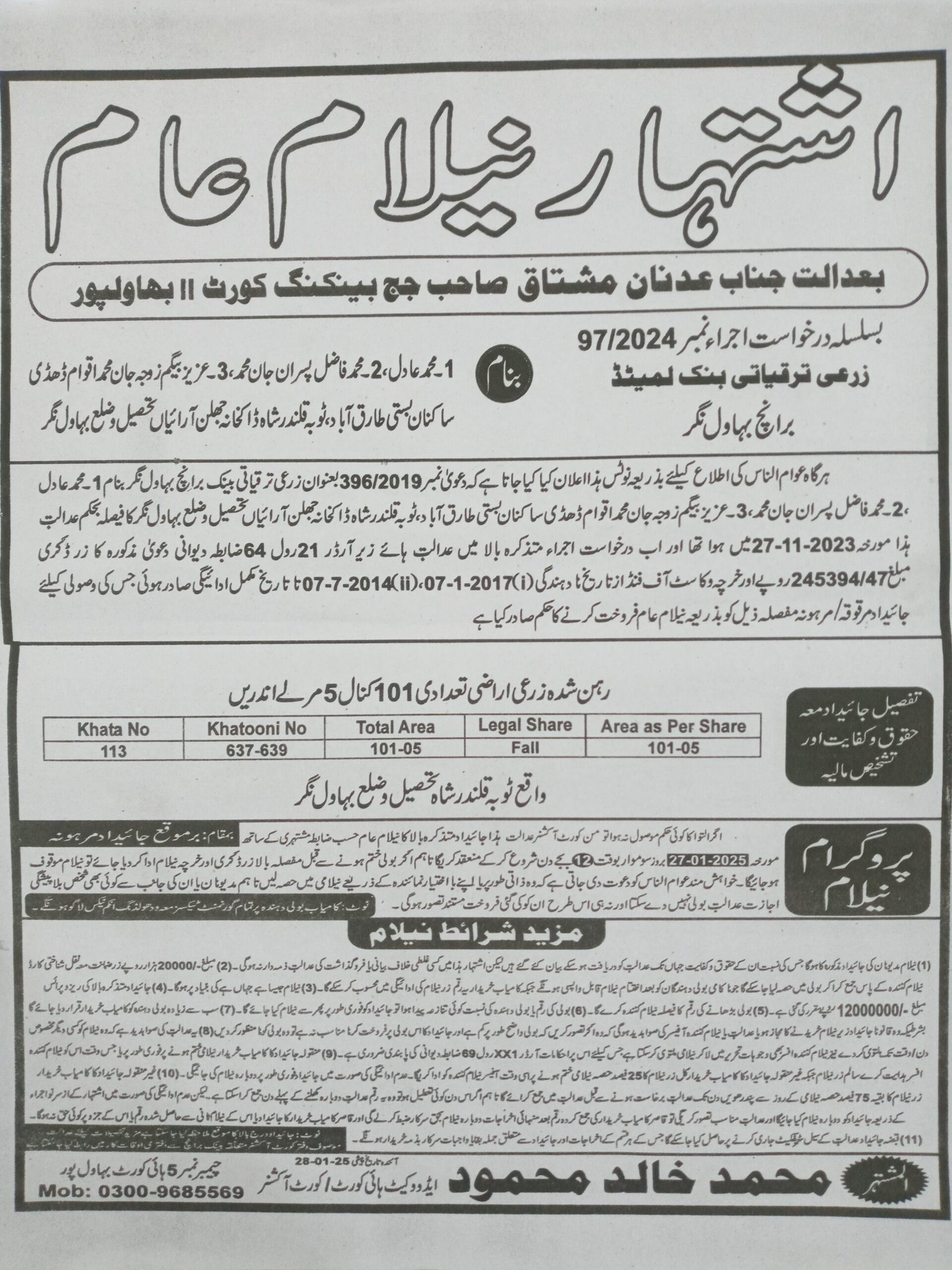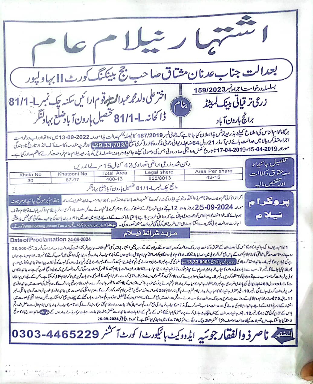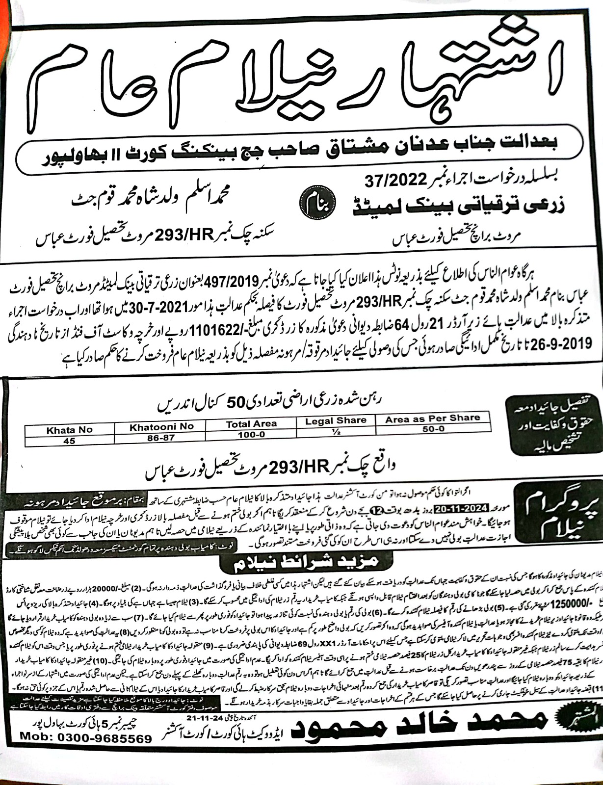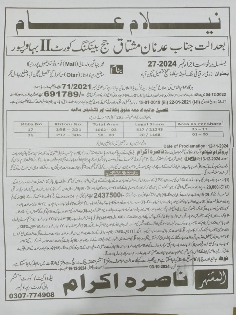 4. خانپورماہر برانچ کی عوامی نیلامی پینافیلکس