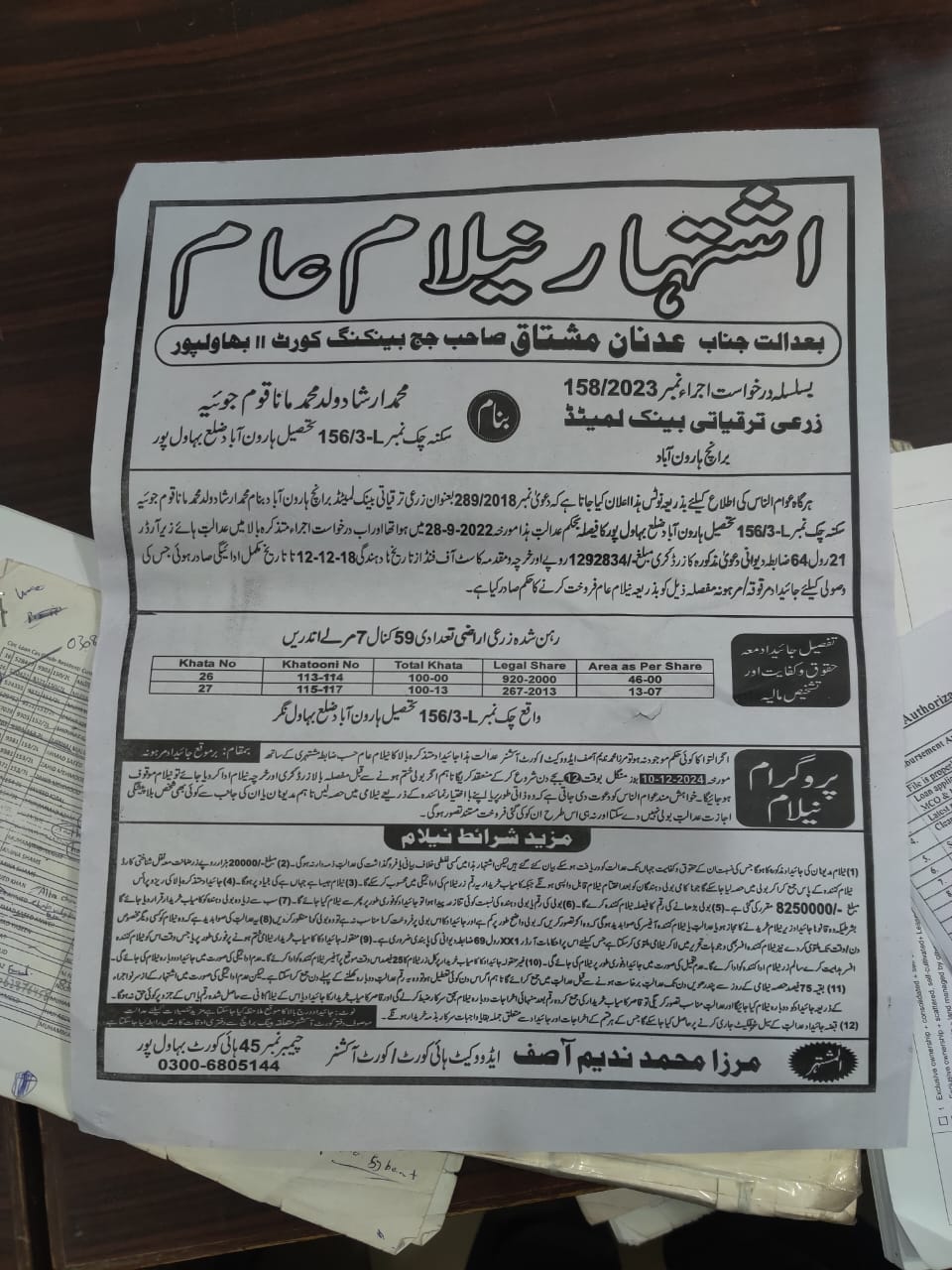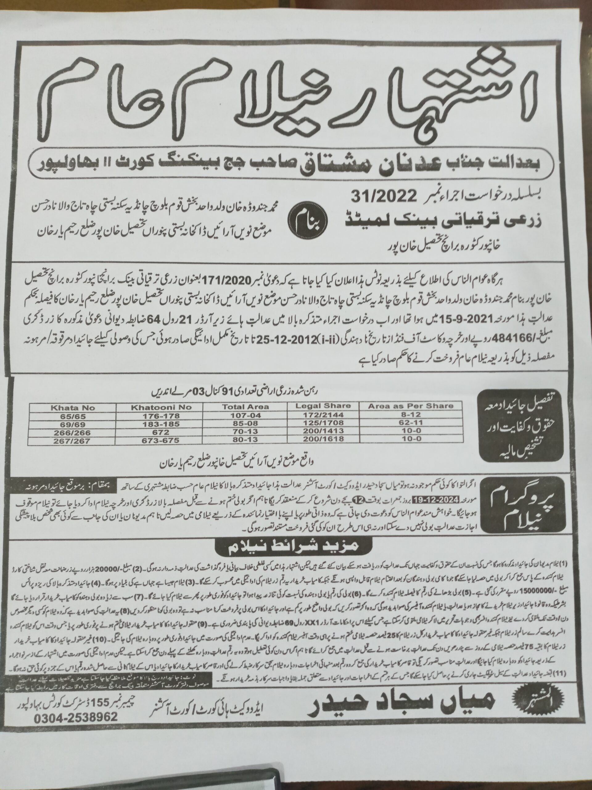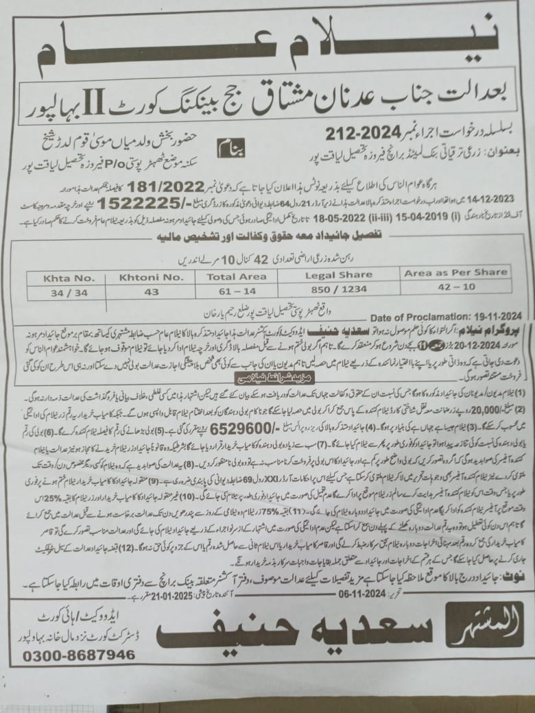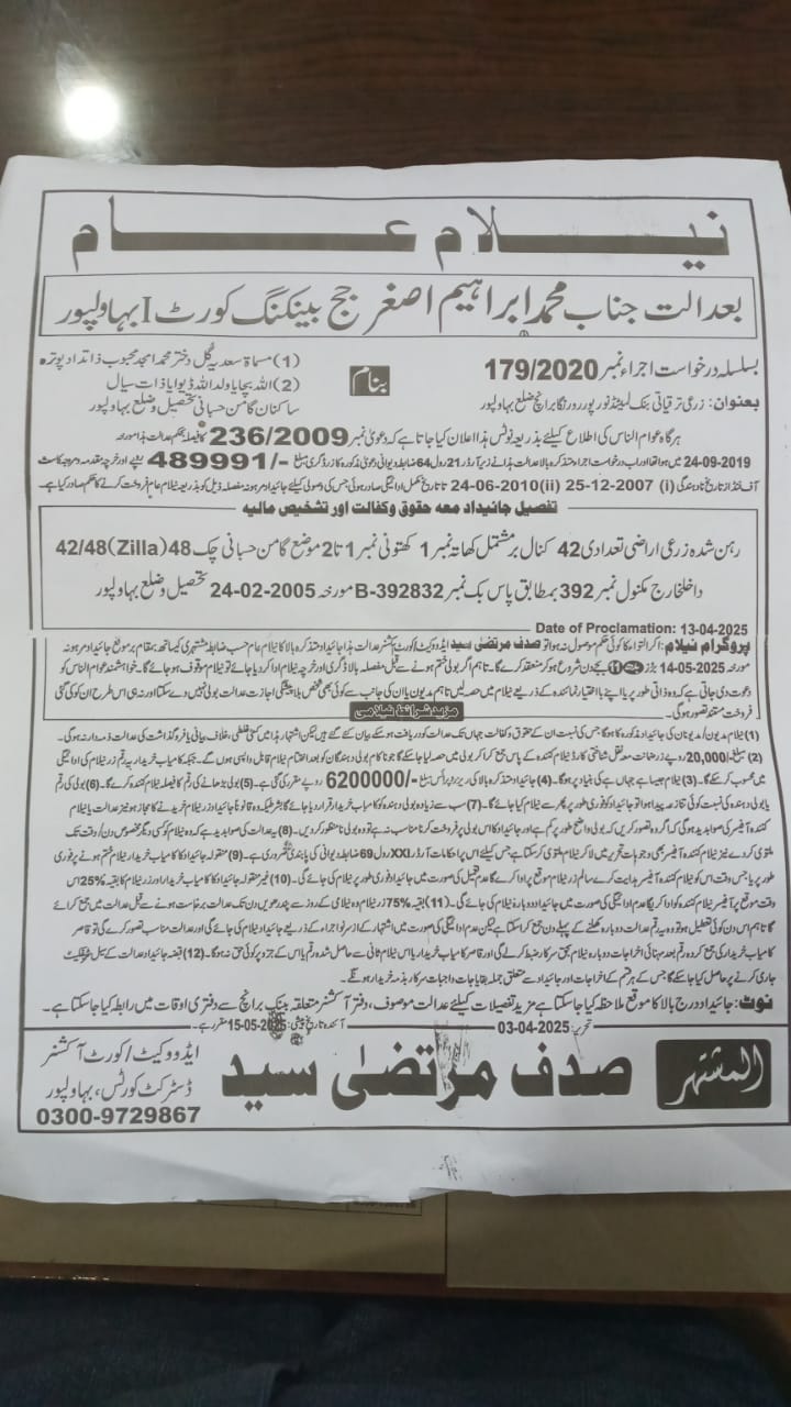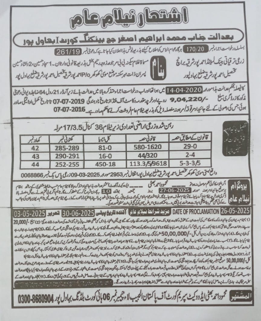 6. خانپورماہر برانچ کی عوامی نیلامی پینافیلکس