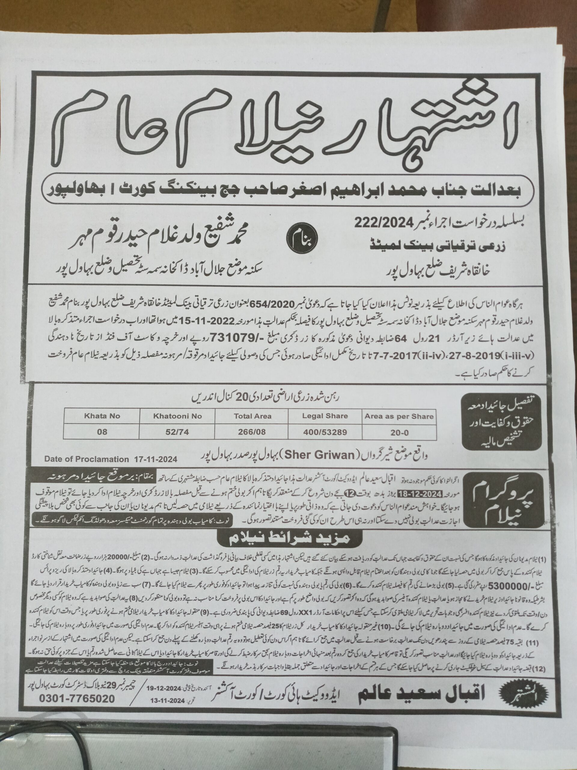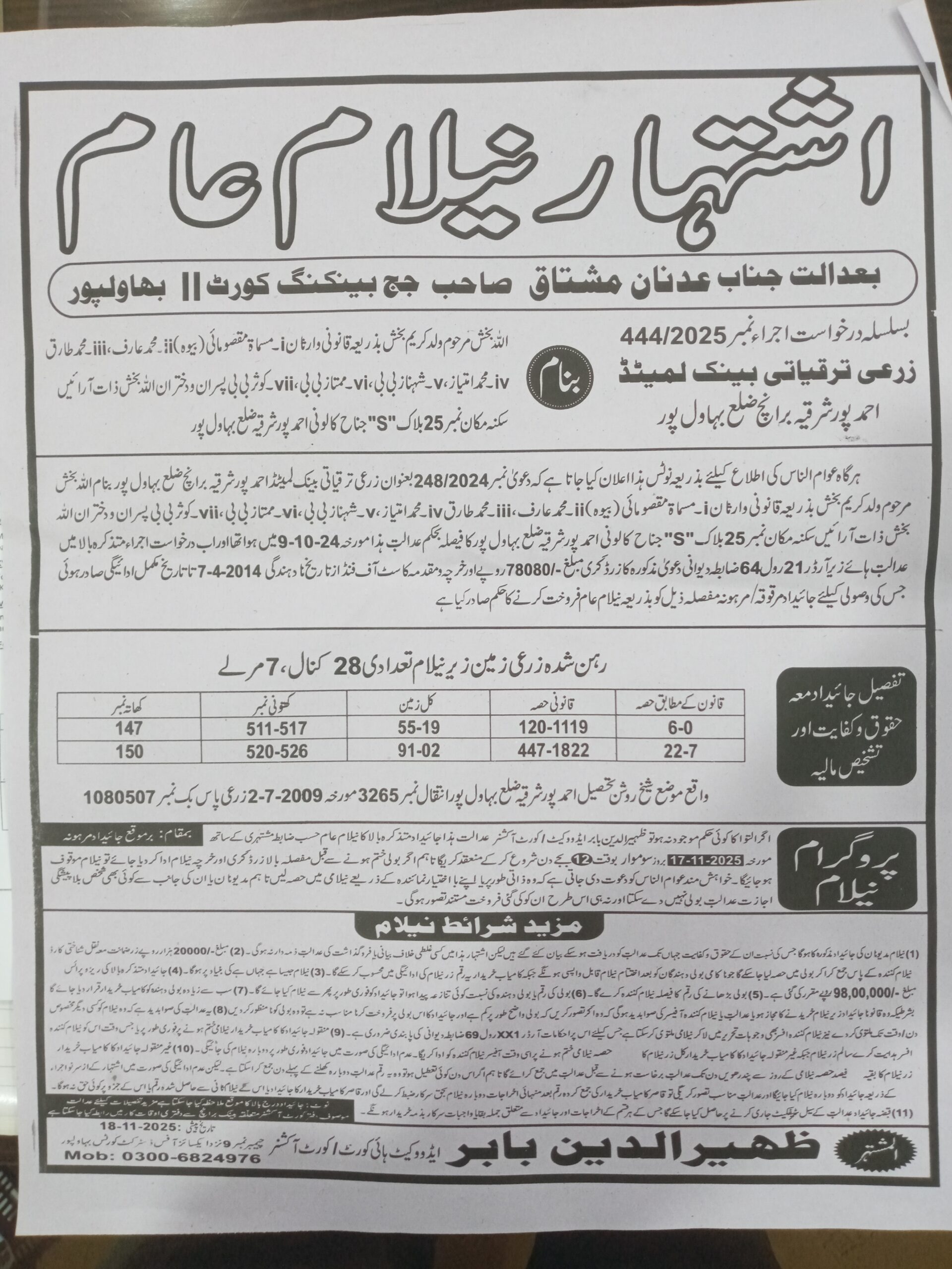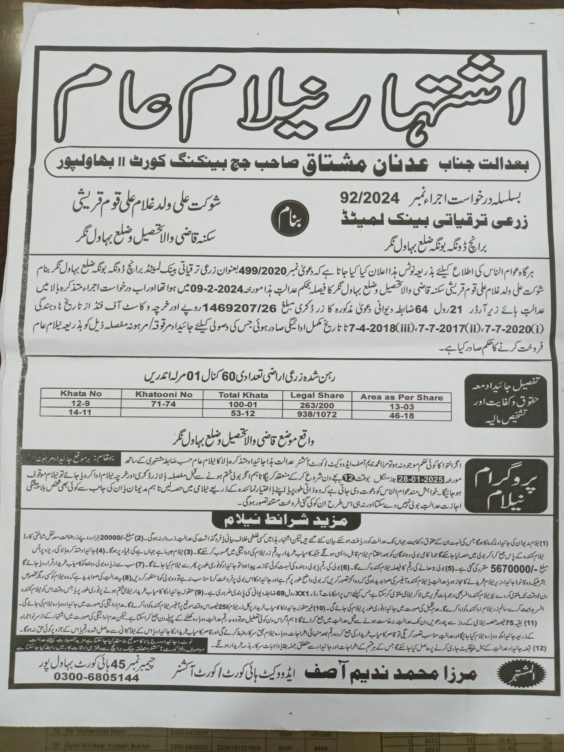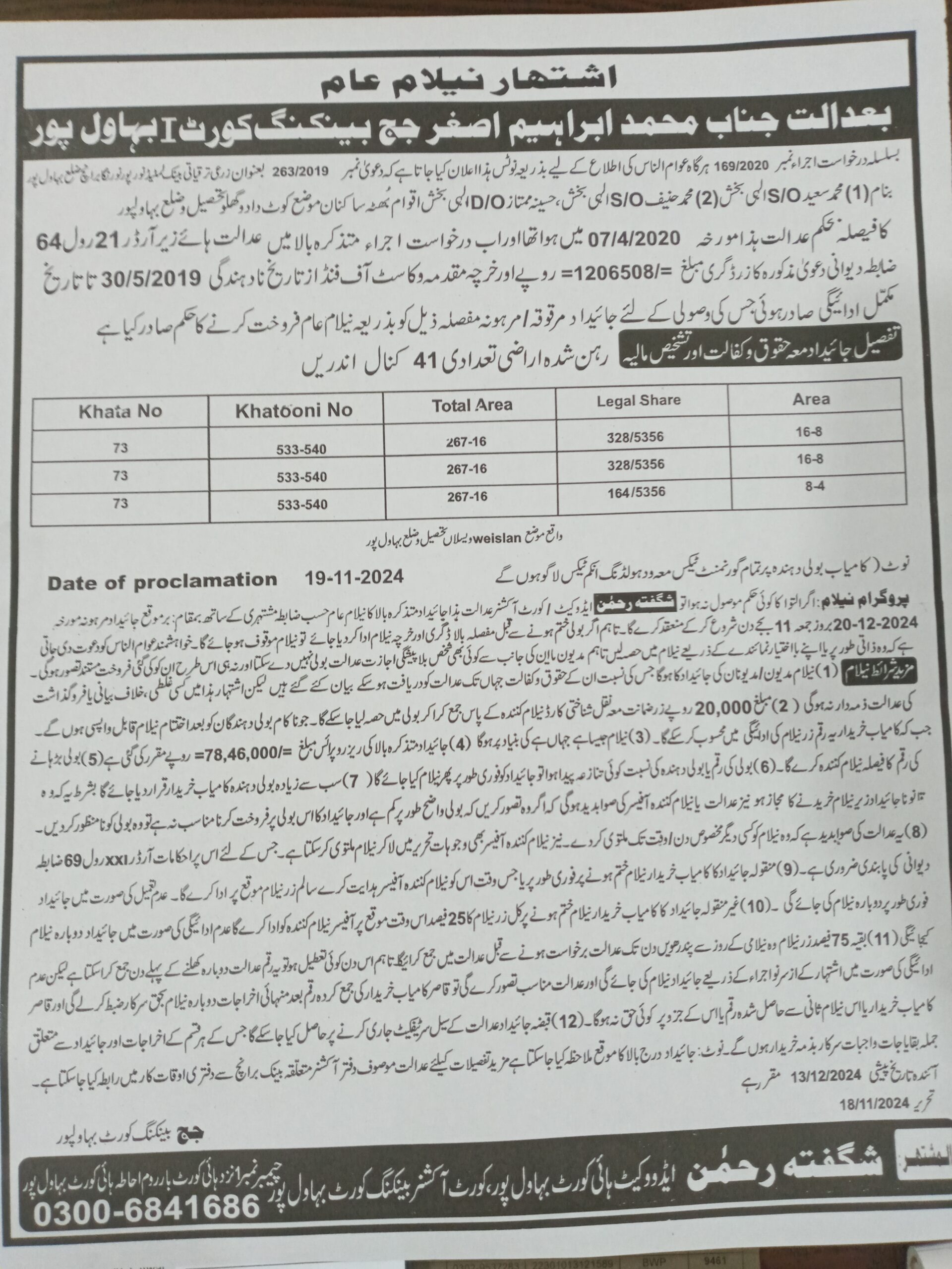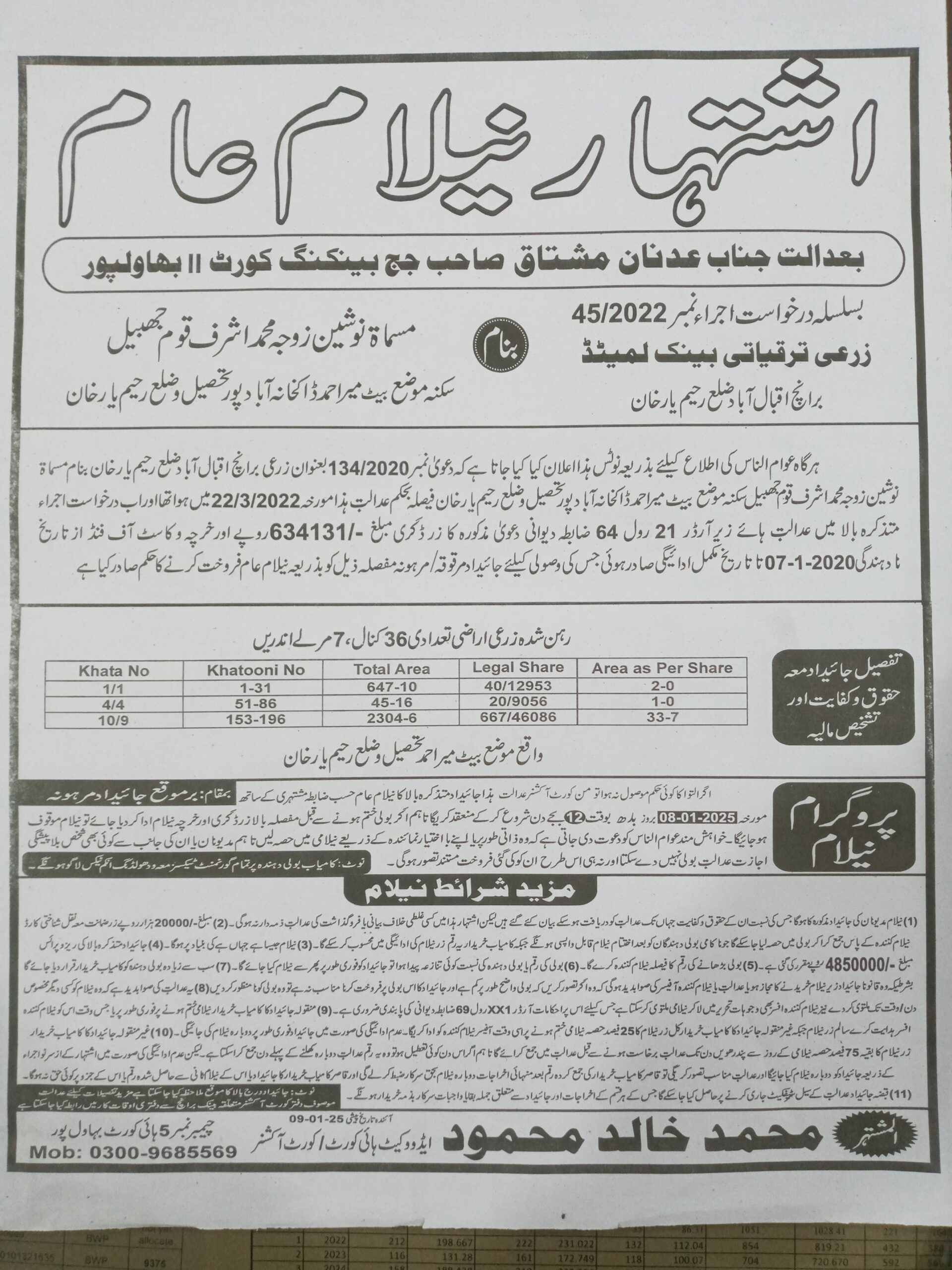 6. خانپورماہر برانچ کی عوامی نیلامی پینافیلکس