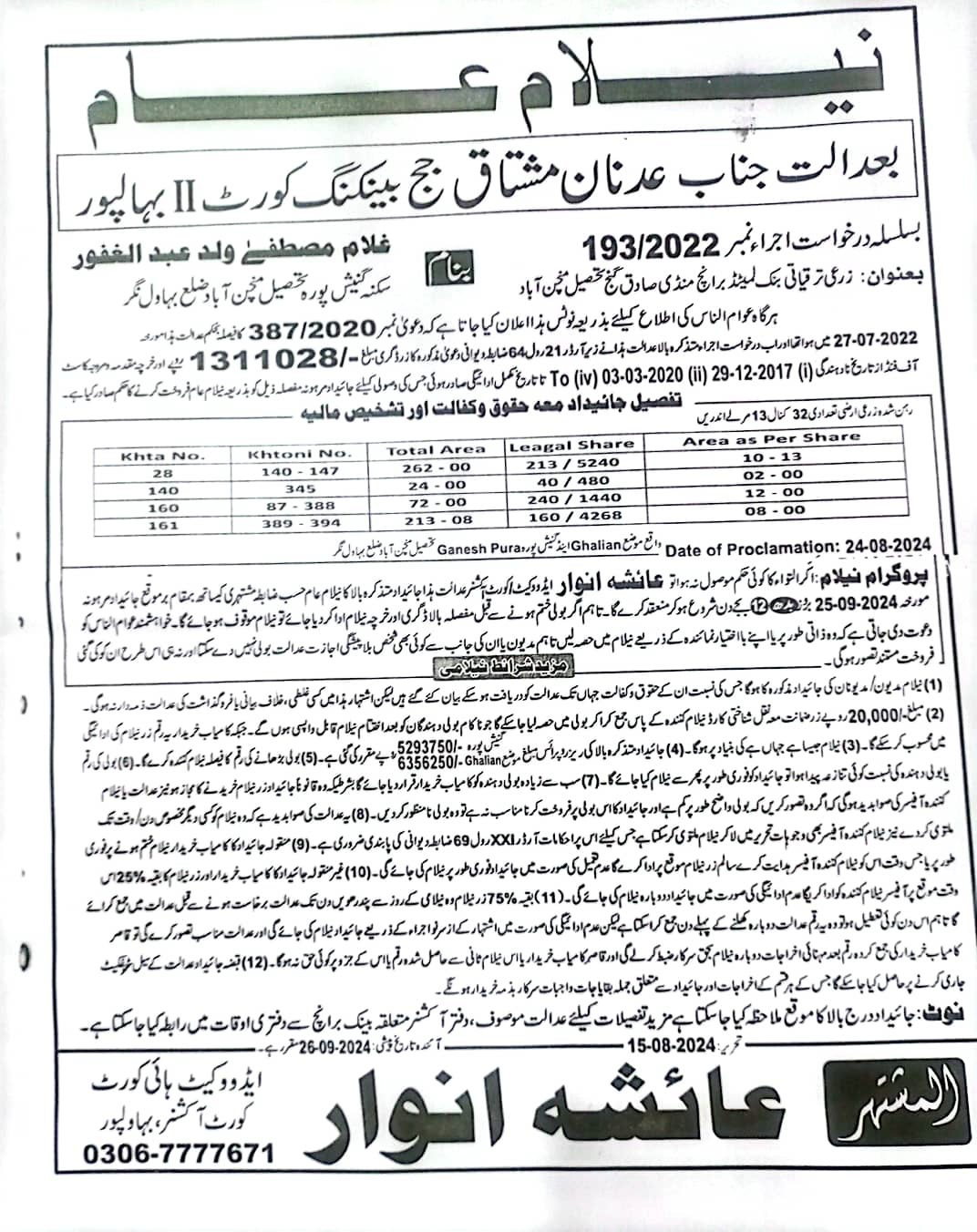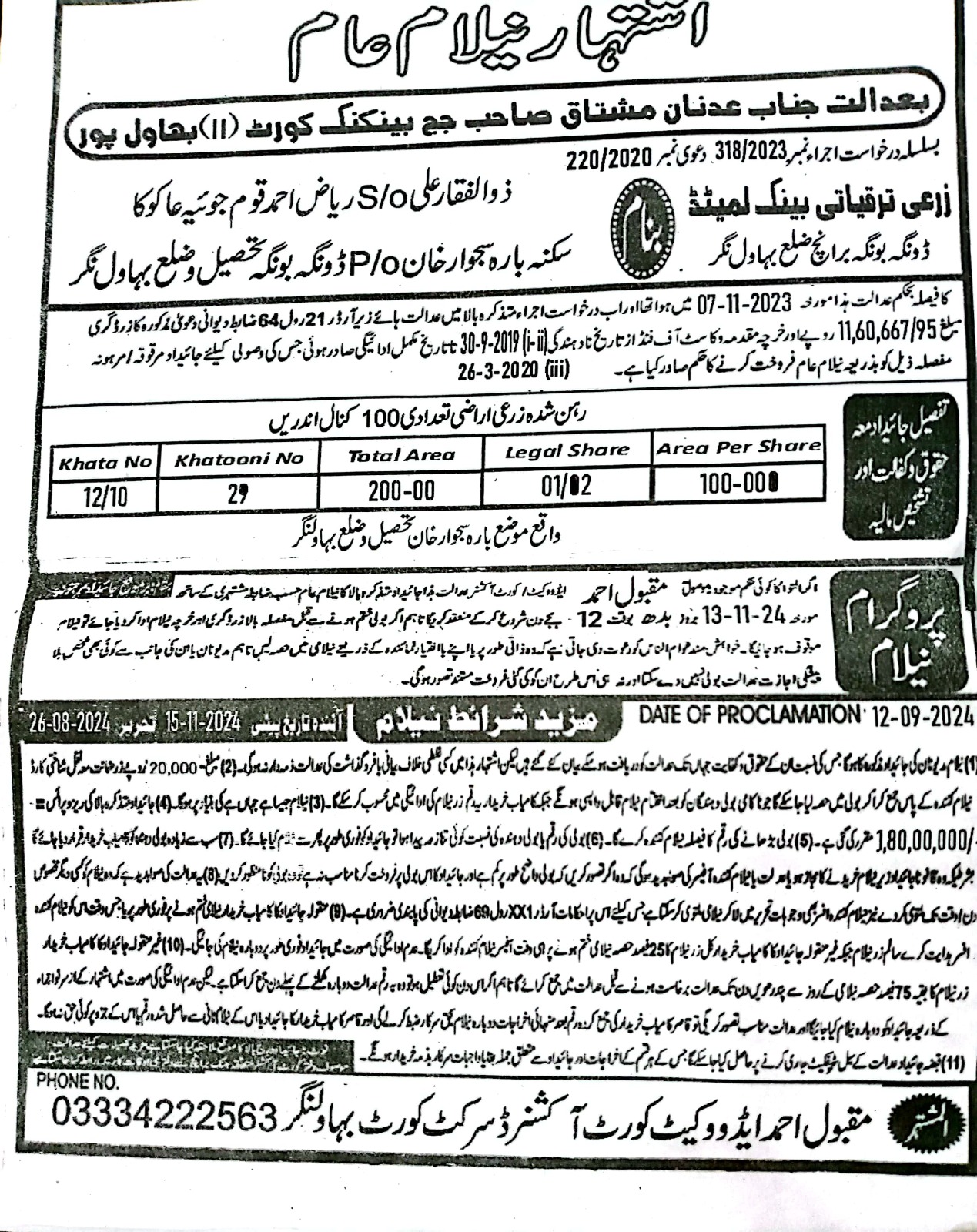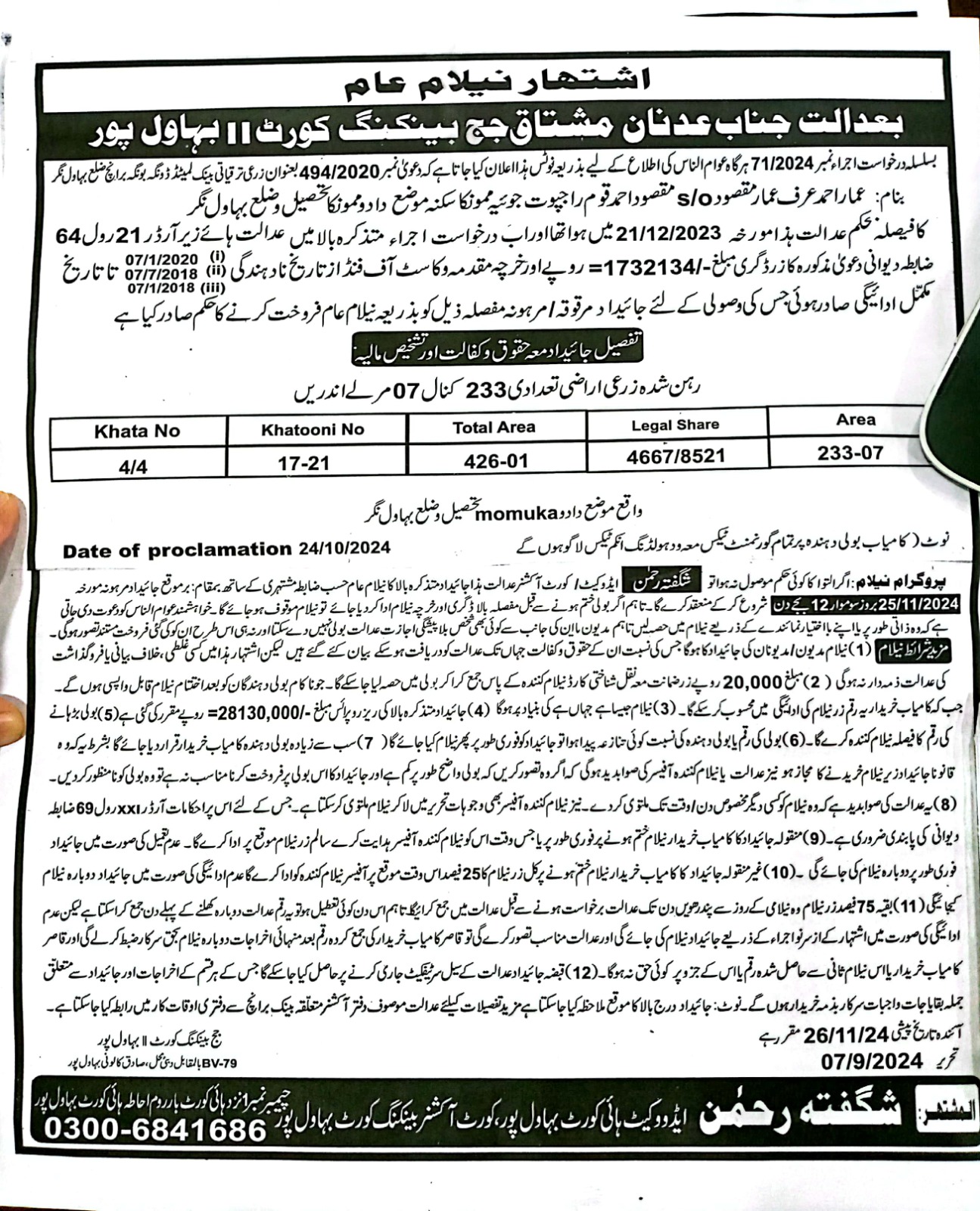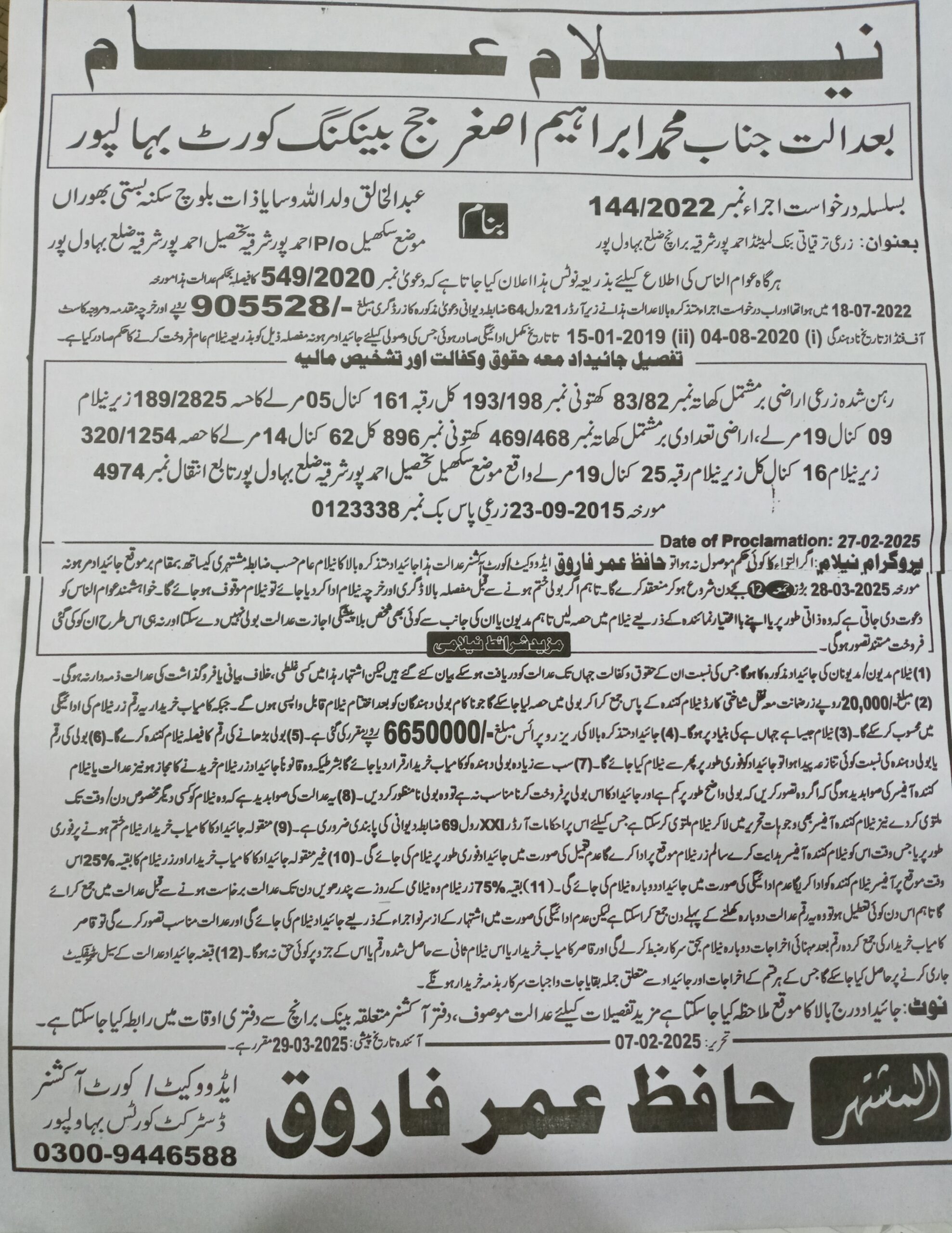 6. خانپورماہر برانچ کی عوامی نیلامی پینافیلکس