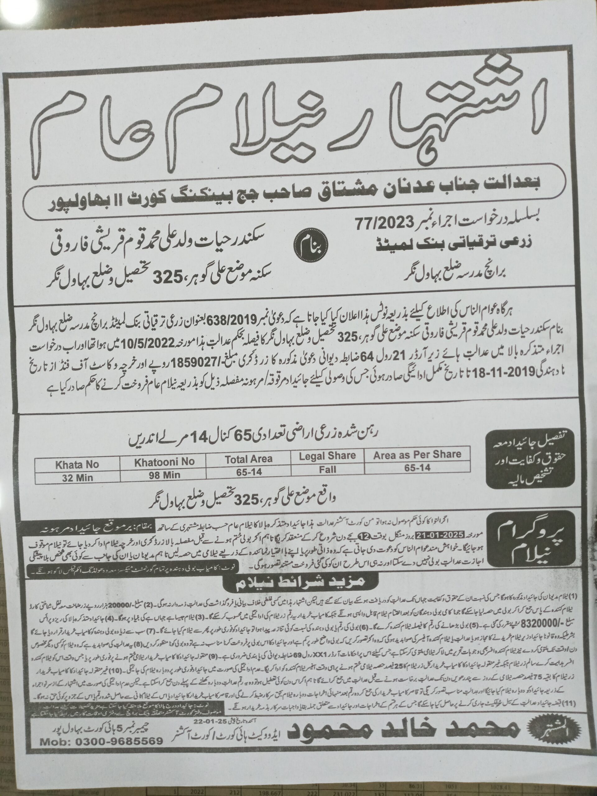 2. خانپورماہر برانچ کی عوامی نیلامی پینافیلکس