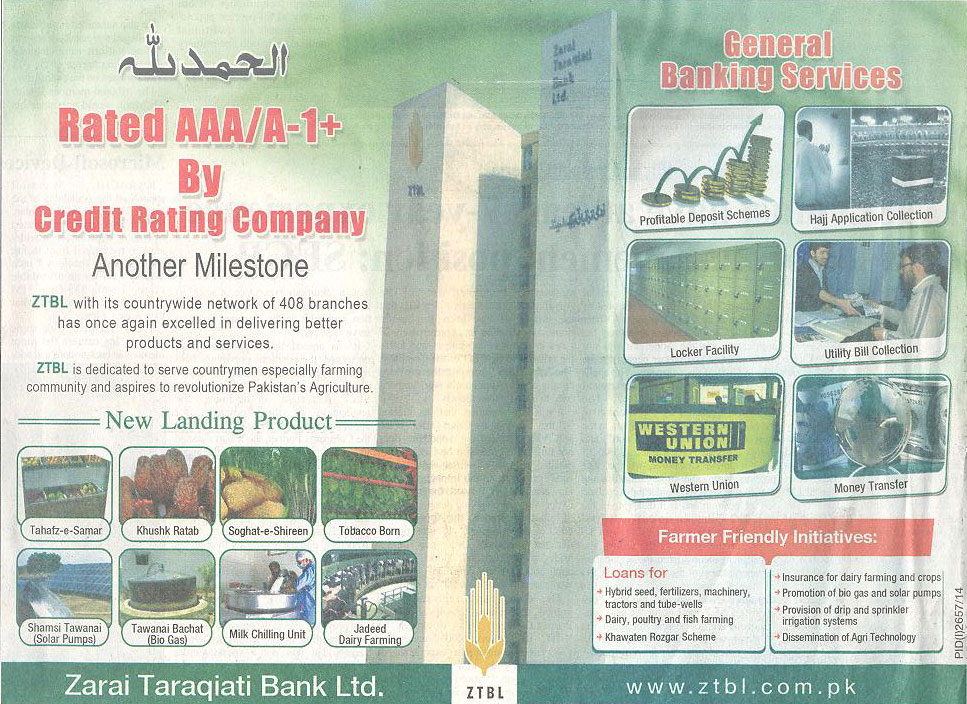 زرعی ترقیاتی بینک شرح کریڈٹ ریٹنگ کمپنی اور اے ای اے / A-1 + کے ذریعہ 408 شاخوں کے ملک بھر میں نیٹ ورک کے ساتھ دوسرا سنگ میل ایک مرتبہ پھر بہتر مصنوعات اور خدمات فراہم کرنے میں کامیاب ہوگیا ہے. انگریزی |